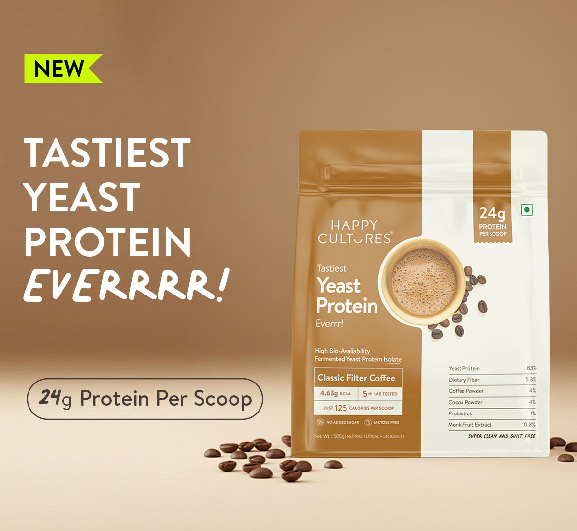Happy Cultures 24g Tastiest Yeast Protein (Fermented) | Classic Filter Coffee