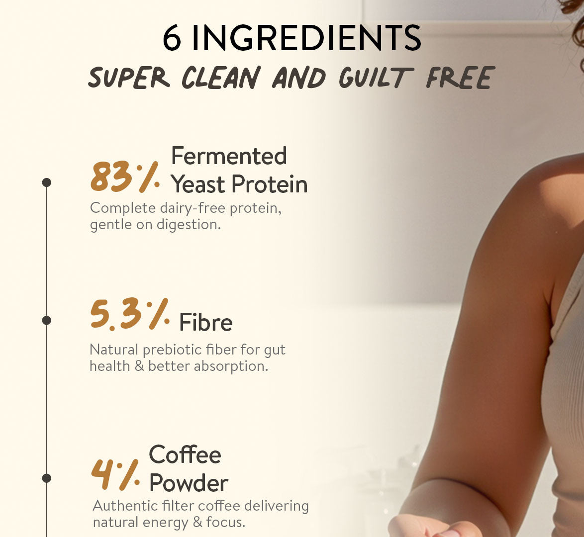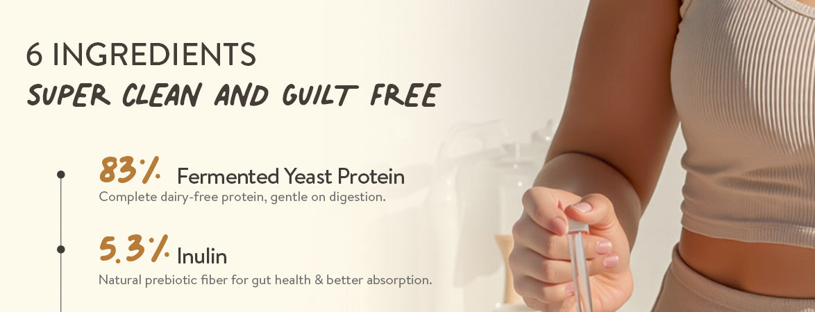 Not at all. Fermented Yeast Protein is naturally free of allergens like lactose, gluten, dairy and soy. The protein is designed to be light and gut loving, with natural digestive enzymes from papaya and pineapples to support smooth, bloat-free digestion.