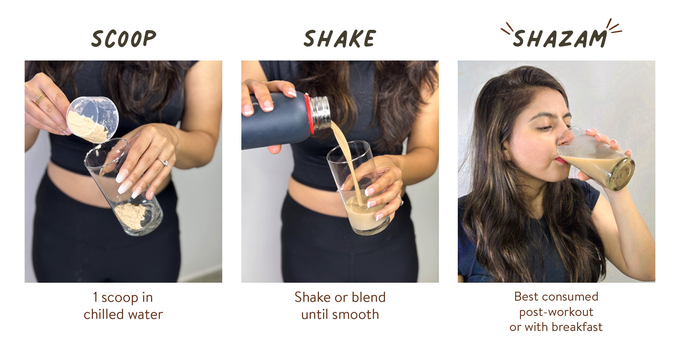 For best results, take it within 30–60 mins post workout, or as a healthy breakfast or snack during your day.