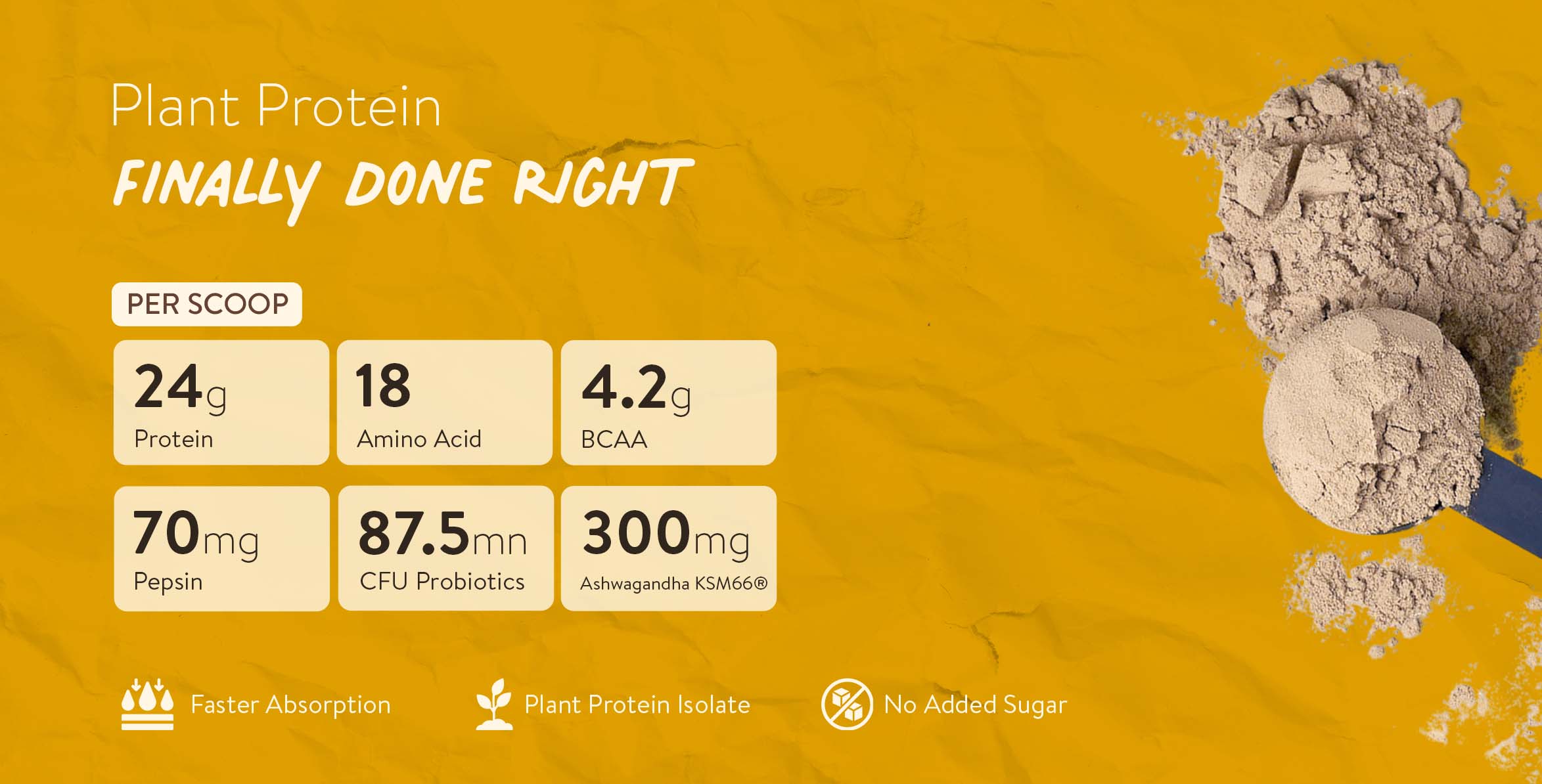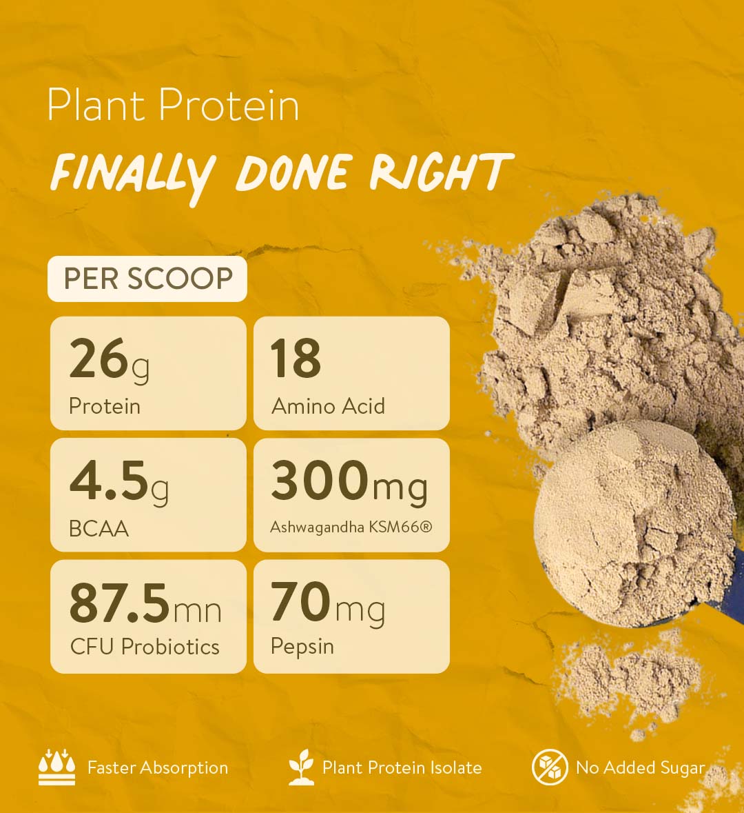 Each scoop delivers 26g of clean, plant-based protein backed by 18 essential and non-essential amino acids.