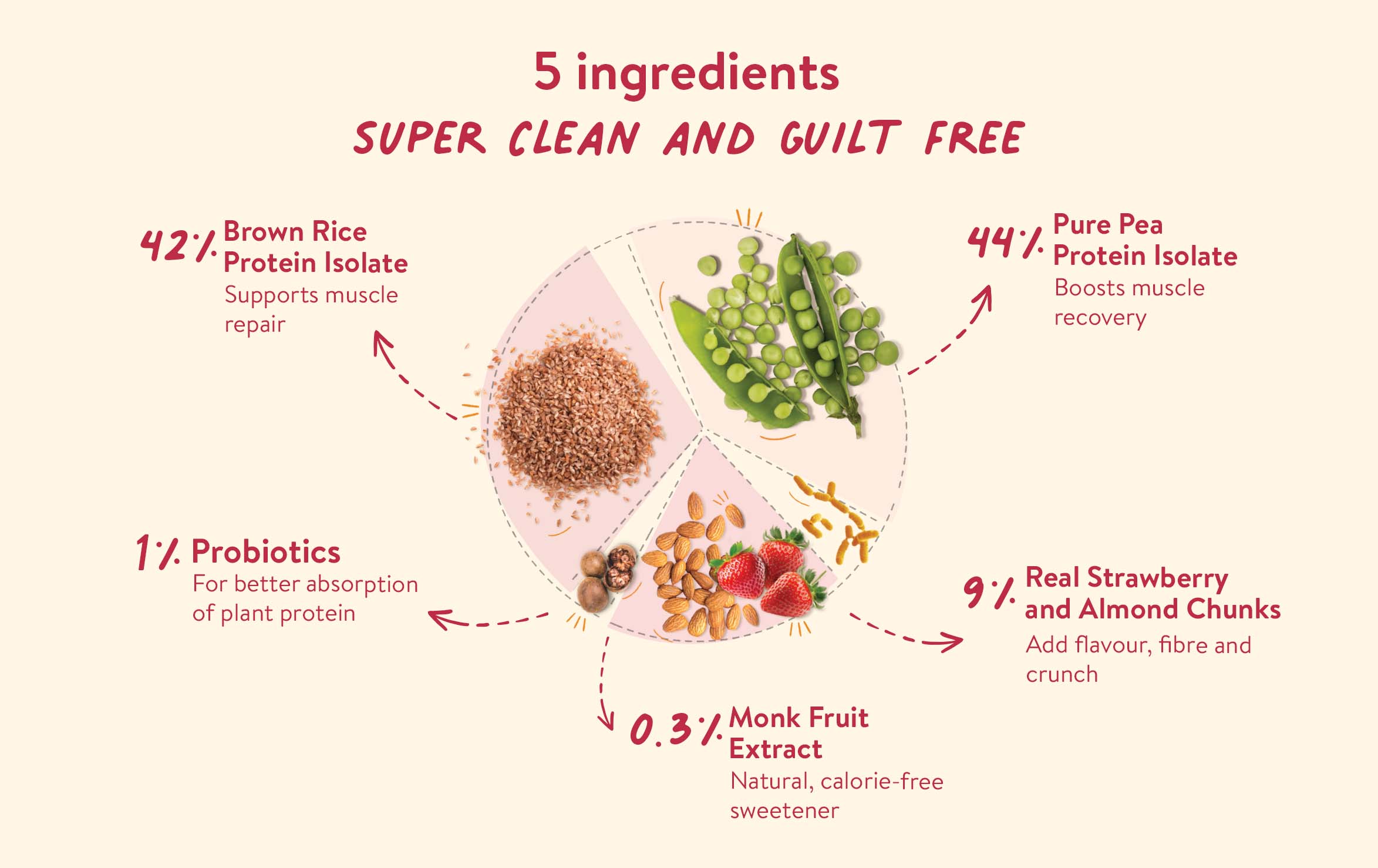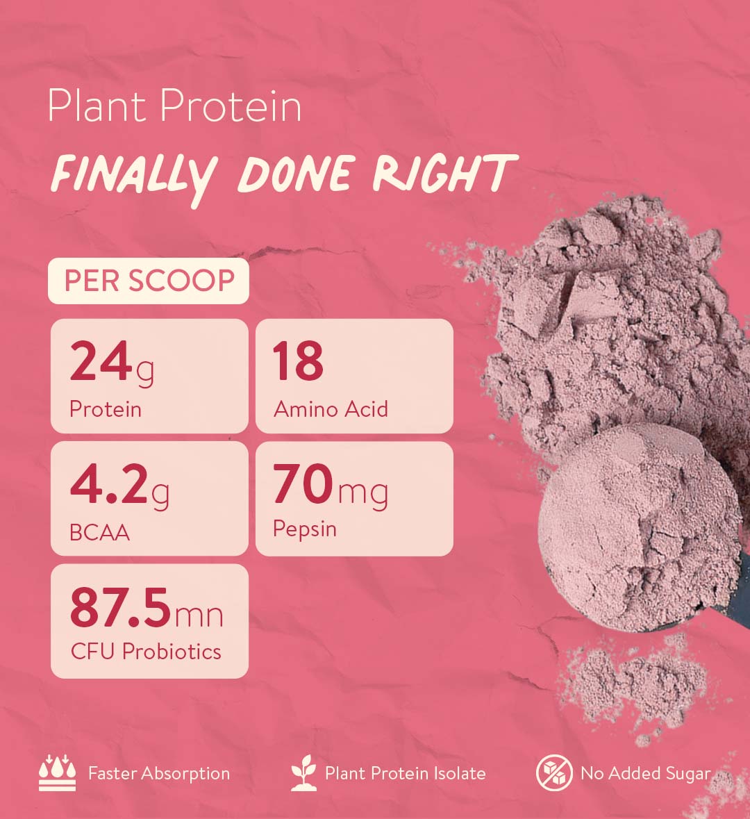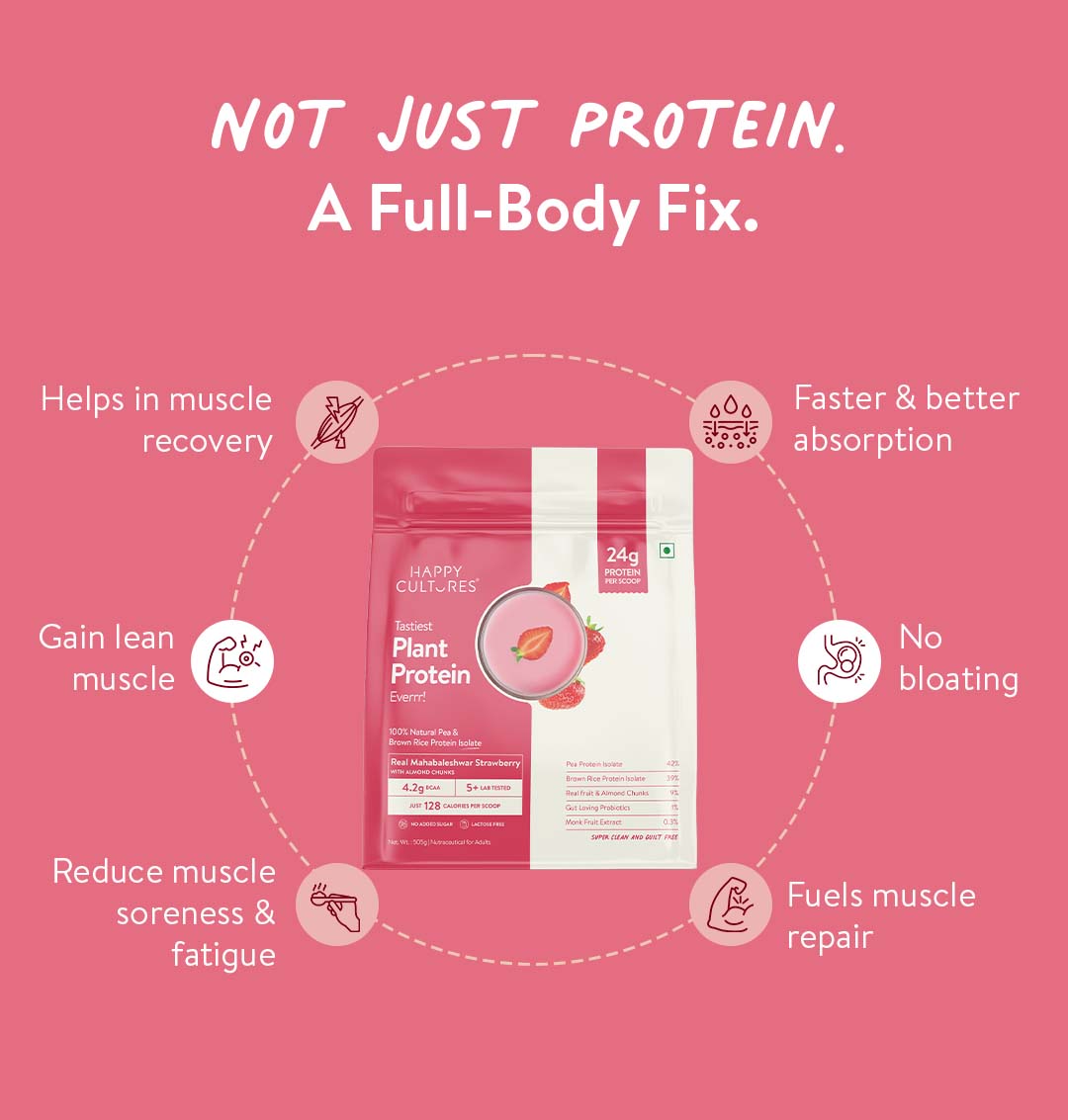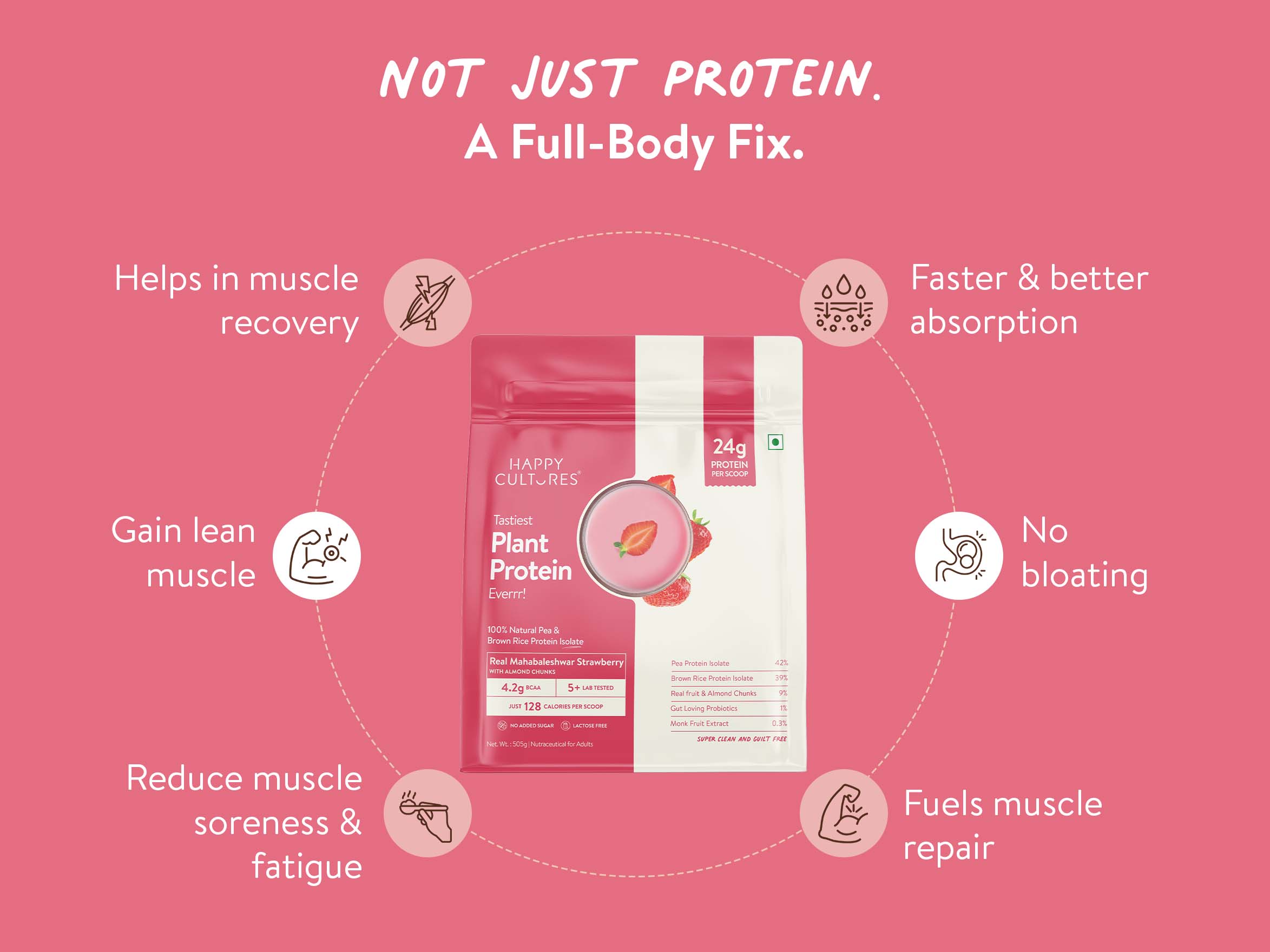 The Tastiest Plant Protein Everrr | Mahabaleshwar Strawberry | 24g Protein Per Scoop 505g - Strawberry
