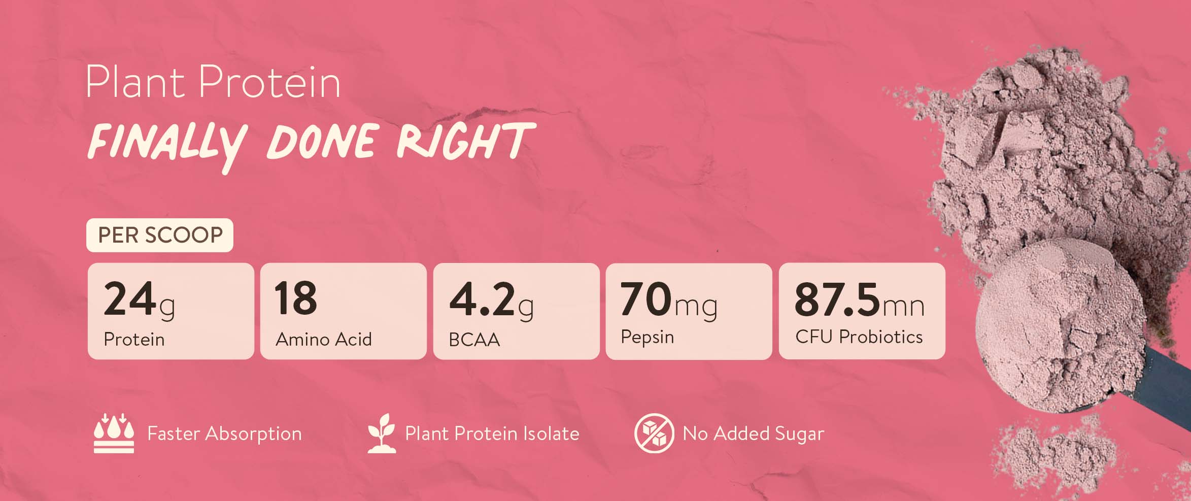 Each scoop delivers 26g of clean, plant-based protein backed by 18 essential and non-essential amino acids.